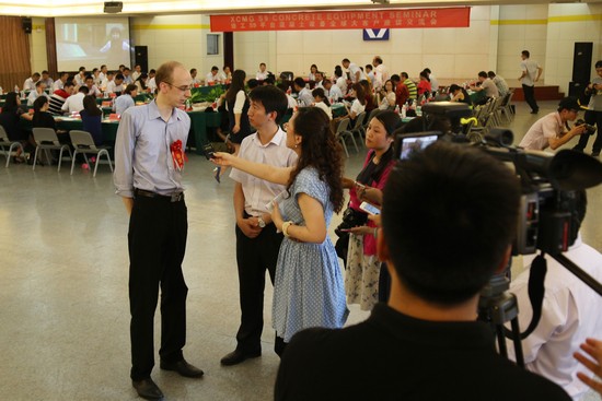 No dia 29 de julho, cerca de 40 administradores dos fabricantes de concreto e empresas de construção na primeira linha do mundo, provindos de mais de 10 países ao longo de “Um cinto, uma rota” global, reúnem todos no XCMG, que testemunham a estréia mundial de uma nova geração de maquinaria de concreto do XCMG - produtos da plataforma S9. Em local de atividades, um caminhão de bomba com a extensão mais comprida de 52 metros no mundo e 3 pontes e 1 caminhão de bomba com pernas de suporte em forma de arco com a extensão de 58 metros e 4 pontes lideram 17 equipamentos de conjuntos de concreto para alinhar ordenadamente, que são compostos por caminhão de bomba, bomba de caminhão, bomba de reboque, caminhão misturadora de auto-alimentação de materiais SLM4, máquina de colocação de tecido, mecanismo de areia, pulverização molhada, o braço da bomba vermelho estende-se pelo céu, cruzando com céu azul e nuvens brancos e formam-se um desenho. Esta é a primeira vez que o XCMG mostra aos clientes do mundo para exibir os equipamentos de concreto completos. A cerimônia de entrega do veículo dos conjuntos de produtos de plataforma S9, que se realiza mais tarde, empurra a conferência para um clímax.