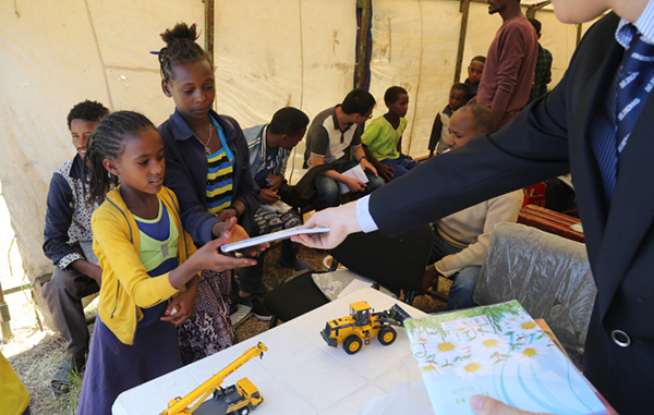 Nos últimos anos, com El Nino se intensificar, os países africanos nomeadamente a região do Corno da África estão a sofrer clima seco cada vez mais raro, e a situação na Etiópia está muito preocupante. No início de Janeiro, o Secretário-geral da ONU, Ban Ki-moon na capital da Etiópia, Adis Abeba, disse aos repórteres: ´´O povo deste país estão a confrontar a seca mais severa durante os últimos 30 anos...a urgência é muito mais do que um governo consiga suportar.´´ O Presidente do Grupo XCMG, Wang Min, quando soube a seca severa na Etiópia, decidiu imediatamente para doar 1850 mil de RMB, a fim de estabelecer um Fundo Especial de Sonho Azul. Entre o valor, houve 750 mil de RMB destinado a construir instalações de conservação de água em pequena escala no Corno da África, Etiópia para recolher água de chuva, entretanto, o grupo também juntou o Escritório da Primeira Dama local do NGO Internacional para construir 50 caves de água para beneficiar as comunidades e escolas locais, resolvendo o problema de água para mais de 4000 aledões e alunos e aumentando a capacidade de lutar contra desastres naturais.