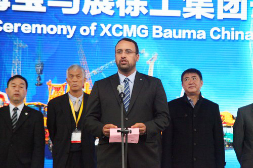O presidente da Associação de Indústria de Máquinas de Construção da China, Qi Jun fez discurso