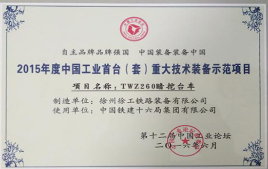 2015 China industrial primeiro (conjunto)maior prêmio de projeto de demonstração de equipamentos técnicos