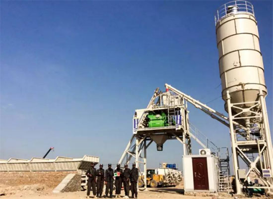 Uma grande planta de mistura de concreto de HZS60KG de XCMG fica no estaleiro do projeto de estrada de Karachi de Paquistão, alguns soldados de Paquistão tirarem as fotos na porta do estaleiro. Este é o epítome que o XCMG ajuda a construção da infra-estrutura de Paquistão. Como o líder da indústria da máquina de engenheiro da China, o XCMG dedica a sua força própria à amizade da China e Paquistão.