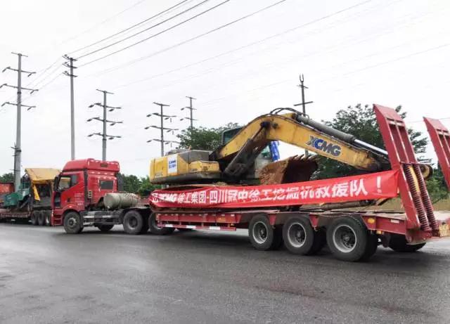 O chefe do equipe de resgate de escavadores de XCMG é o gerente da região de Sichuan, Xu Kebiao quem lidera 14 funcionários de salvamento e operários ao sítio imediatamente. De acordo as condições reais, a área de colapso é grande, tem mais pedras grandes, as funções de escavadores pequenos não são suficientes, então, as pessoas de salvamento precisam dos escavadores de toneladas médias e grandes. XCMG arranja 6 equipamentos, incluindo: 3 escavadores grandes de XE265 e 3 escavadores grandes de XE370 de Chengdu ao sítio às 14:00.