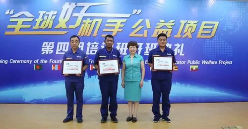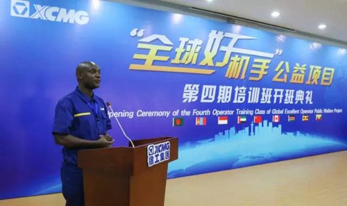 Em 18 de julho, 13 trainees, vieram de oito países, Canadá, Mongólia, Uganda, Quênia, Myanmar, Bangladesh, Indonésia, Emirados Árabes Unidos, e 58 operadores vieram de 12 províncias do País, total de 71, reuniram na Faculdade técnico da XCMG, testemunharam a cerimônia de abertura de projeto público, o Quarto Treinamento “Bom operador de máquina global”.