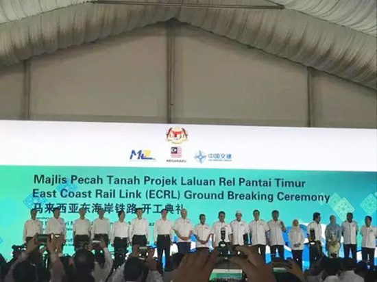 A ferrovia da costa leste da Malásia é um projeto modelo de B&R juntamente construido pela China e Malásia, também é um projecto emblemático de B&R, que como uma parte da Ferrovia trans-asiática coneta com a ferrovia da Tailândia, construindo uma ligação de transporte terrestre a partir do Sudoeste da China para a Malásia, formará um bom efeito de demonstração no sudeste da Ásia, mesmo nos Países ao longo de B&R. O projeto é o maior projeto em construção construido no exterior pela empresa chinesa, também é o maior projeto único no âmbito da iniciativa por B&R.