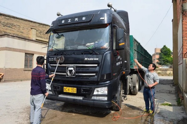 O Motorista Wei sempre ama muito seu caminhão. Quando ele está livre, ele vai limpar o caminhão. Embora seu caminhão tenha sido comprado em 2016, ele esteve em várias estradas por cerca de três anos, mas a pintura ainda é brilhante e nova.
