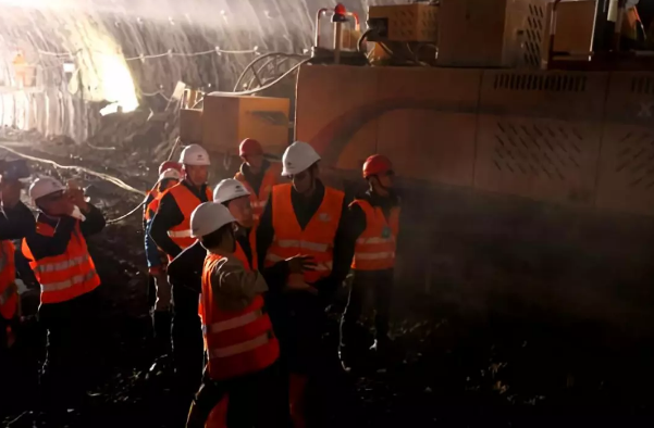 Cui inspecionou o local de construção do Túnel de Jabuka na Rodovia Bar-Boljare e perguntou sobre o uso da escavadeira XCMG-XTR260