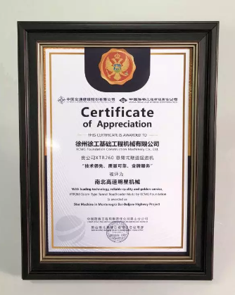 A escavadeira XCMG XTR260, aplicada pelo Departamento de Projetos do Montenegro Bar-Boljare Highway da CCCC Tunnel Engineering Company, examinada e revisada pelo Departamento de Gerente Geral, foi recompensada como “Máquina Estrela da Rodovia Bar-Boljare” por sua vantagem de "Tecnologia Líder, Qualidade Confiável e Serviço de Ouro".