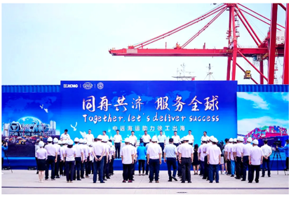 "A travessia do mar em colaboração com a COSCO Shipping, Lianyungang Port Group e outros parceiros é uma parte indispensável do desenvolvimento global da XCMG", afirmou Lu Chuan com ênfase.