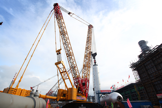 Since June 2011 when XCMG 2000-ton crawler crane participated in SINOPEC Wuhan 800,000 tons/ year Ethylene Engineering, No. 10 Construction Company of SINOPEC has successfully used the crane again to cope with the great challenges of construction work. Thanks to the supreme function and reliable quality of XCMG 2000-ton crawler crane, such remarkable achievement has consolidated the crucial position of Chinese-built super large-tonnage cranes in the key national construction projects.