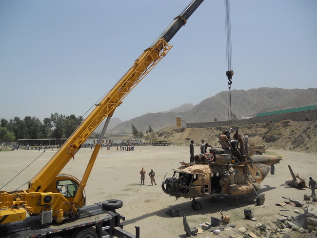 A military picture showing XCMG’s crane’s hoisting the Soviet-made Mi-17 helicopter has been revealed by the official website of US Air Force recently. It was reported that the hoisted Mi-17 was subordinated to Afghanistan Air Force crashed at some area close to Kunar province lately. After that, crew of US Air Force 438 Expeditionary Wing, US soldiers and medical personnel of Afghan government have started investigation, injured-saving and repair work. The US military has utilized XCMG’s QY35K truck crane to perform hoisting operation of the helicopter. Depending on profound performance and reliable quality, XCMG has possessed rather high proportion of market share in Afghanistan and the Middle East region due to long-term market exploration and building.