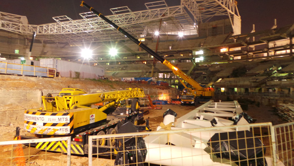 Подъёмник XCMG во время строительных работ на стадионе Арена Фонте-Нова в Сальвадоре