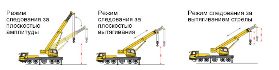 Когда стрела находится под нагрузкой, возникает небольшая деформация стрелы, что приводит к отклонению вертикальной и горизонтальной линий поднятого груза. Если подъем осуществляет оператор с недостаточным опытом, он не может предвидеть насколько большим будет смещение стрелы под нагрузкой, поэтому может возникнуть потенциально опасная ситуация. Технология контроля компенсации амплитуды решает эту проблему, когда стрела находится под нагрузкой, система осуществляет автоматическую компенсацию на величину отклонения, это обеспечивает постоянное нахождение груза на установленных линиях.
