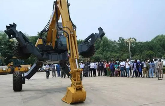Делегация представителей 12 стран из Африки по очереди посетили выставочный зал XCMG, базу производства дорожных техник, базу производства техник для санитарной обработки и отдел по делу экскаваторов, посмотрели шоу машины ЕТ 110 XCMG, называемой «Человек-паука», систематически и полностью ознакомились с опытами и успехами, достиженными в последние годы в сфере способствования в строительстве инфраструктуры городов и сел всех стран мира. В ходе посещения высокое свойство и высокое качество техник XCMG производили глубокое впечатление на представителей, представители из Африки дают согласие об инициативу Корпорации XCMG: «Лидерство в технологической сфере и постоянное движение вперед», были уверены в высокой технологии продукции XCMG, и также выражали сильное желание на сотрудничество. На месте шоу ЕТ110 представители из Африки последовательно сняли видео мобильными телефонами, восхищались отличной способностью машины в сильной приспособляемости к разным условиям работы. После показания представители стали активно снять фото перед машиной.