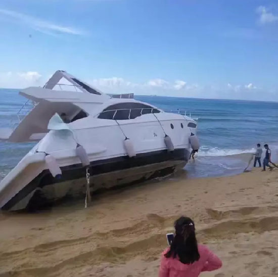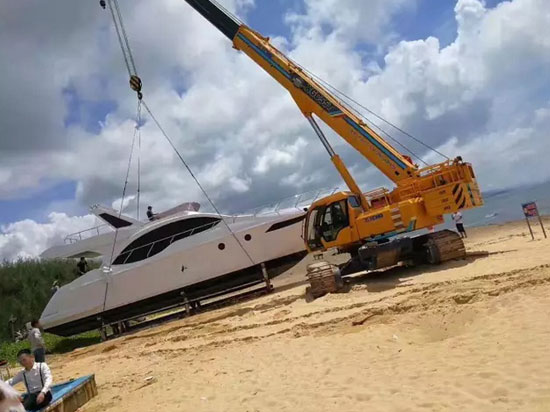 На каком-то морском пляже в Хайнань, одна прогулочная лодка стоимостью около 10 миллионов юаней из-за неправильной операции садилась на мель. В связи с влажным и мягким пляжем простой кран совершенно не может войти на место спасания, если случайно вошел, то не может установить опоры, даже при неосторожности может возникать опрокидывание на борт.
