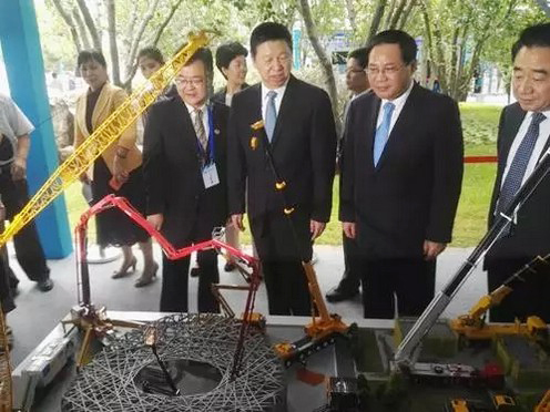 В сопровождении секретаря Ли Цянь, министр Сун Тао посетил выстаночный стенд XCMG, секретарь Ли Цян сказал министру Сун: у XCMG сильная инновационная способность, высокая степень интернационализации, очень непроста! Секретарь Ли Цян тщательно спросил 100 метров пожарных машин XCMG, и гусеничные изделия самого большого тоннажа в 4000 тонн в мире, высоко оценил XCMG является «непростым» предприятием.