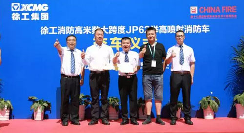 «Серия V5 создала новую концепцию, дала людям чрезвычайно сильный визуальный толчок!». Видя новейшую пожарное оборудование XCMG, новейший дизайн, у только что вошедших в выставочную зону XCMG посетителей разбегаются глаза от царящего здесь великолепия. Новый дизайн и мощные характеристики модели DG54M1 «Непобедимый» заставили многих посетителей остановится и рассмотреть ее подробно. На торжественной церемонии передачи автомобиля специальная пожарная машина с водонапорной башней с высоким расходом и большим пролетом для использования в нефтехимии JP62S1, называемая «Богатырем нефтехимии» была впервые передана клиенту и опробована им. Благодаря передовой совершенной конструкции, сочетающей выносную опору и стрелу, она стала ослепительной звездой павильона, вызвал восторженные восклицания посетителей. «Серия пожарных машин V5 представляет собой не только переход на продукцию, соответствующую национальному стандарту выбросов V, но и стремительное повышение характеристик продукции. В ней достигли зрелого применения как умные технологии демонстрации и получения навигаторов, передача данных автомобиля на большие расстояния и удаленная диагностика неисправностей», - объясняет клиенту технический директор XCMG Сюй Сяодун.