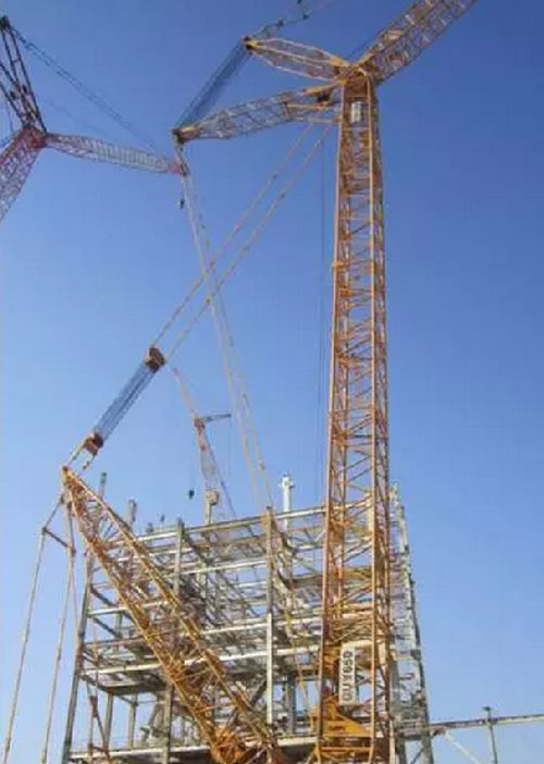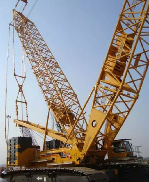 Гусеничный кран QUYU650 производства XCMG осуществляет строительные работы на строительной площадке индийской компании RRELIANCE INFRASTRUCTURE LIMITED