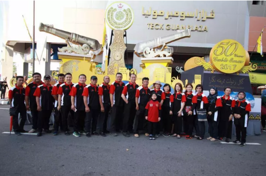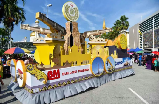 На днях в Брунее проводилась широкомасштабная торжественная церемония, посвященная 50-летней годовщине вступления на престол султана Хассанала Болкиаха. Корпорация XCMG совместно с брунейским дилером, компанией BUILD MIX TRADING, с особым креативом создали парадную машину с характерными особенностями, которая приняла участие в праздновании 50-летней годовщины вступления сулатана на престол. Основными украшениями машины имели форму пушки и щита, которые символизировали защиту государственной территории, охрану государства и безопасность народа. Парадная машина XCMG в ходе шествия получила немало похвалы от брунейцев, а также была названа самой оригинальной парадной машиной.