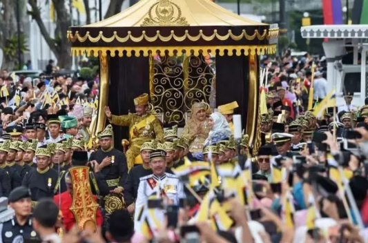 Султан Брунея с супругой едут на демонстрации в парадном экипаже