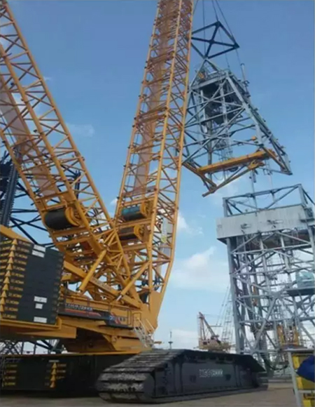 Самый крупнотоннажный кран гусеничного типа XCMG XGC16000 в стране и в экспортной продукции помогает в строительстве морского объекта в Индонезии