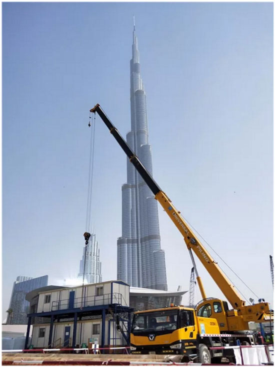 В самом фантастическом городе этого мира краны XCMG добавляют китайский элемент и цвет к празднику Весны, самому экзотическому способу выехать за границу. Во время весеннего фестиваля, в самом высоком здании в мире недалеко от Дубая Бурдж-Халифа, в здании вокруг экспансии участвуют несколько новых кранов XCMG, золотые корпусы которых и Бурдж-Халифа дополняют красоту друг друга.