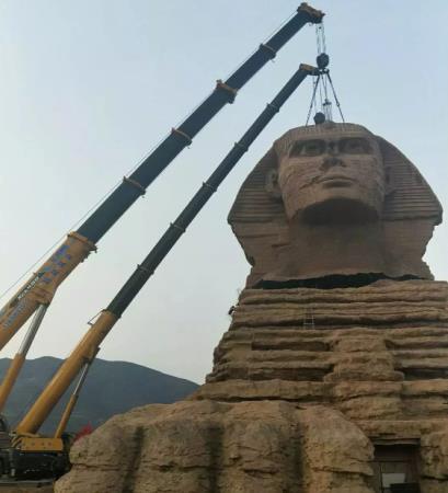 21 марта внутри киностудии г. Шицзячжуан официально завершилось строительство грандиозного проекта для натурной съемки! Посреди киностудии возвышается огромная статуя сфинкса. А главными силами в процессе строительства выступили вседорожные грузовые краны XCMG моделей XCA450 и QAY260!