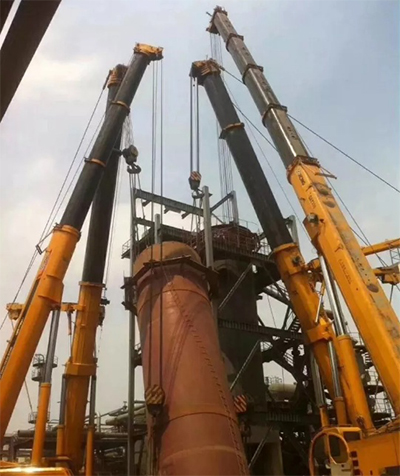 У Shanghai Gaoqiao Petroleum Chemical Company высокий спрос на ремонт оборудования и инженерные ремонтные средства; огромный объем работ, тяжелые подвесные грузы, высокие требования по качеству. Здесь используется скоординированное сотрудничество трех братьев, QAY650, QAY500 и QAY300 в целях обеспечения безопасного и эффективного завершения инженерных операций.