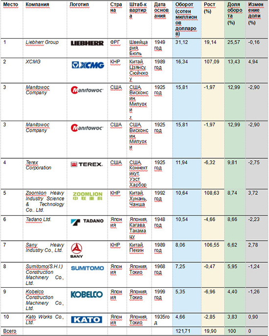 На днях вышел «Список 10 крупнейших производителей подъемных кранов в мире за 2018 год»! В него вошли три китайские компании, а уже многие годы остающаяся лидеров в отрасли подъемных кранов в Китае корпорация XCMG заняла в списке второе место, прочно закрепившись среди лидеров производителей подъемных кранов в мире.