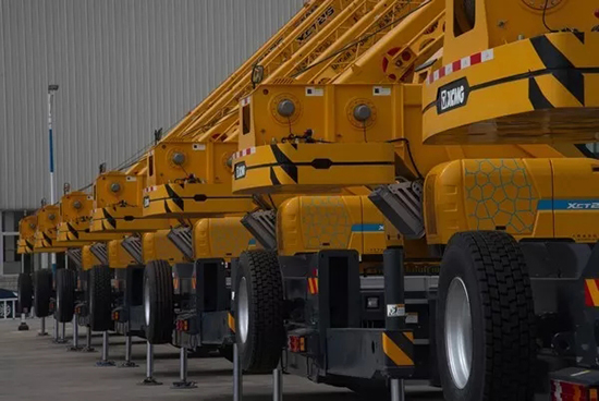 Из них многие модели не имеют аналогов в Китае и даже в мире. XCT80L6 – первый отечественный 80-тонный автомобильный кран с 6-суставной стрелой – уже стал лучшим продуктом такого тоннажа на рынке. XCA60_E – единственный в Китае 60-тонный вседорожный грузоподъемный кран с тремя мостами, экспорт этой модели с текущего года уже осуществляется в Гонконг, Турцию и др. XCA55 – это первая в мире модель 550-тонного вседорожного грузоподъемного крана с семью валами.