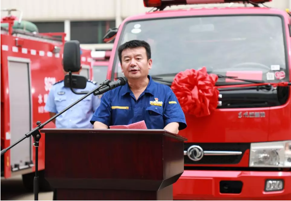 Сюй Цзянган, генеральный директор пожарной части и секретарь парткома, выступил с речью.